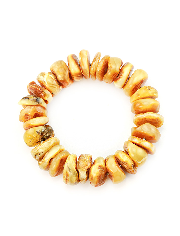 Крупный браслет из натурального янтаря «Шайбы дикие текстурные»