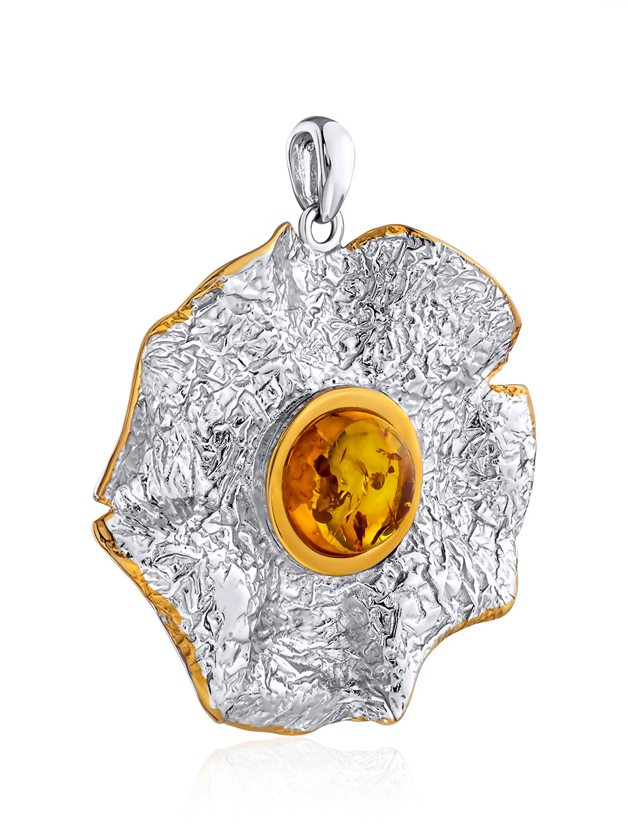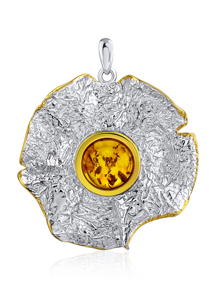Крупный эффектный кулон из натурального янтаря «Мак»
