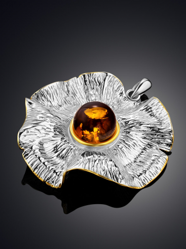 Крупный кулон из натурального янтаря золотистого оттенка «Мак»