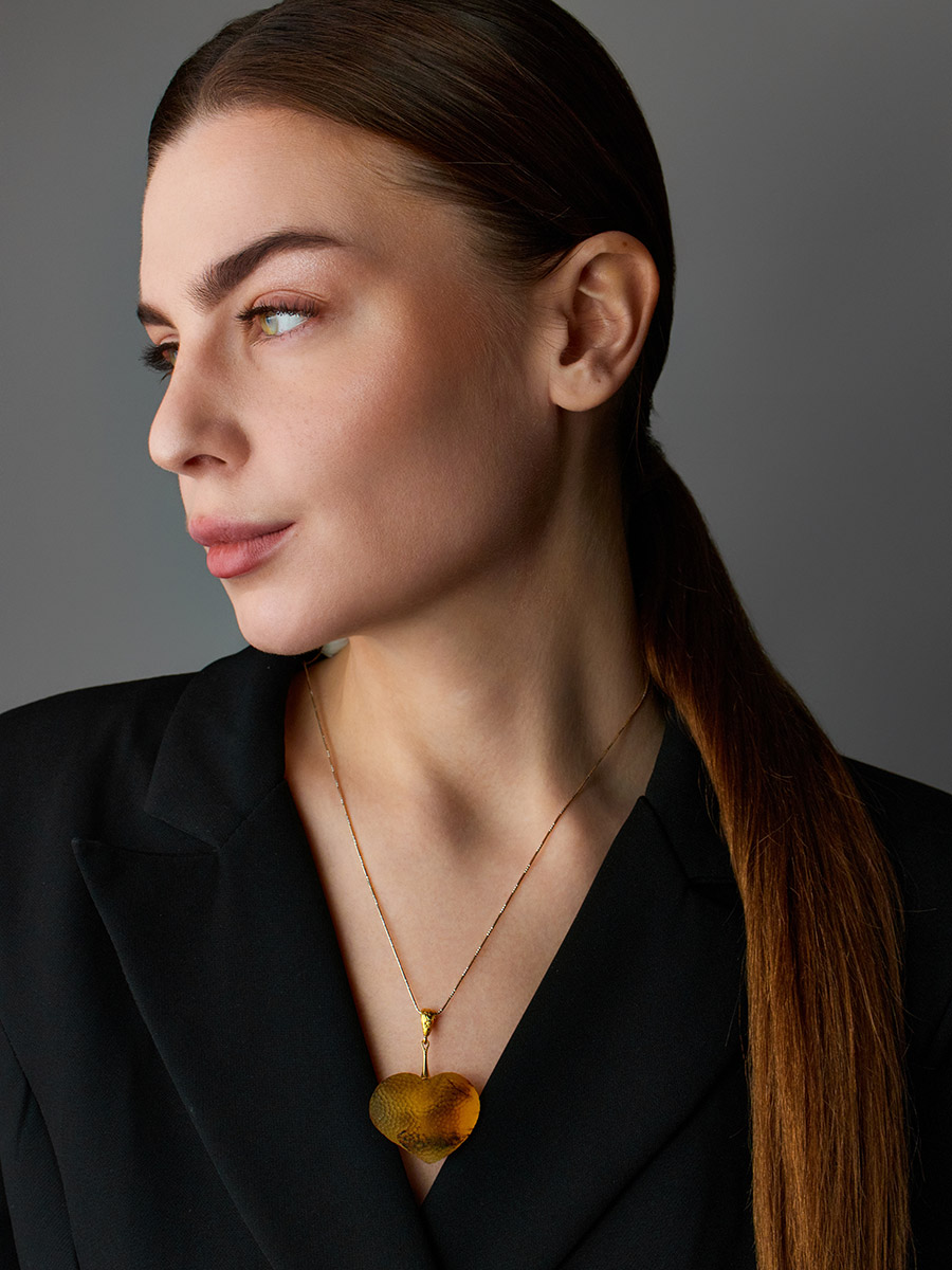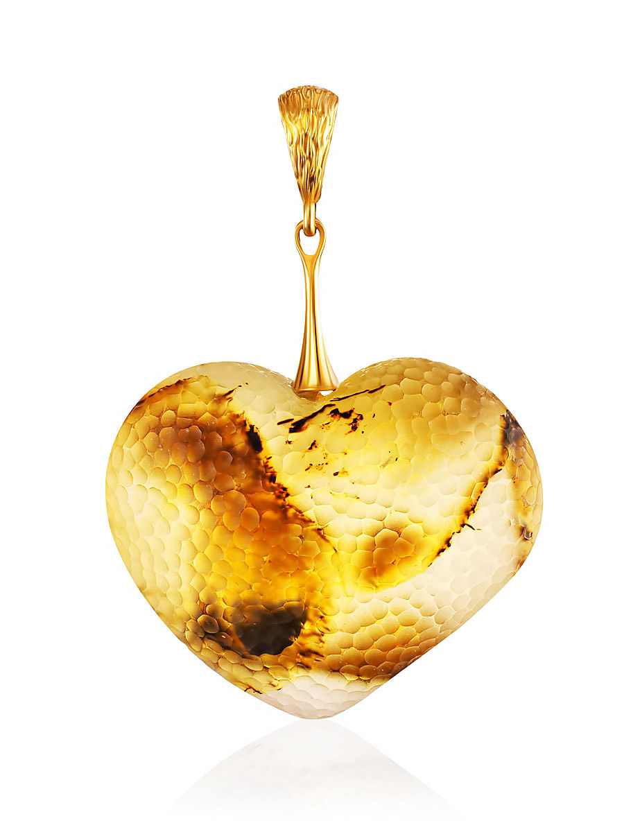 Крупный кулон-сердце из текстурного янтаря «Марс»