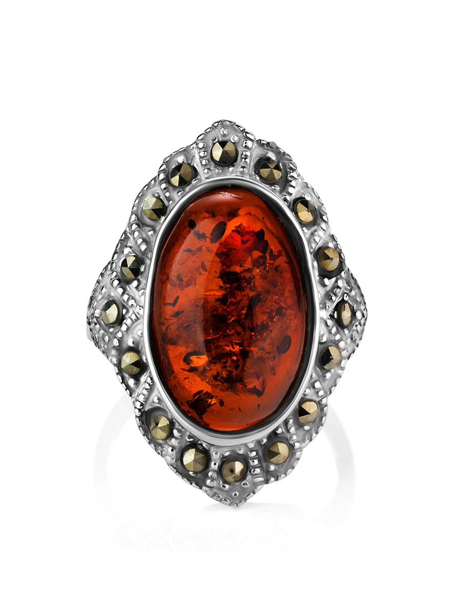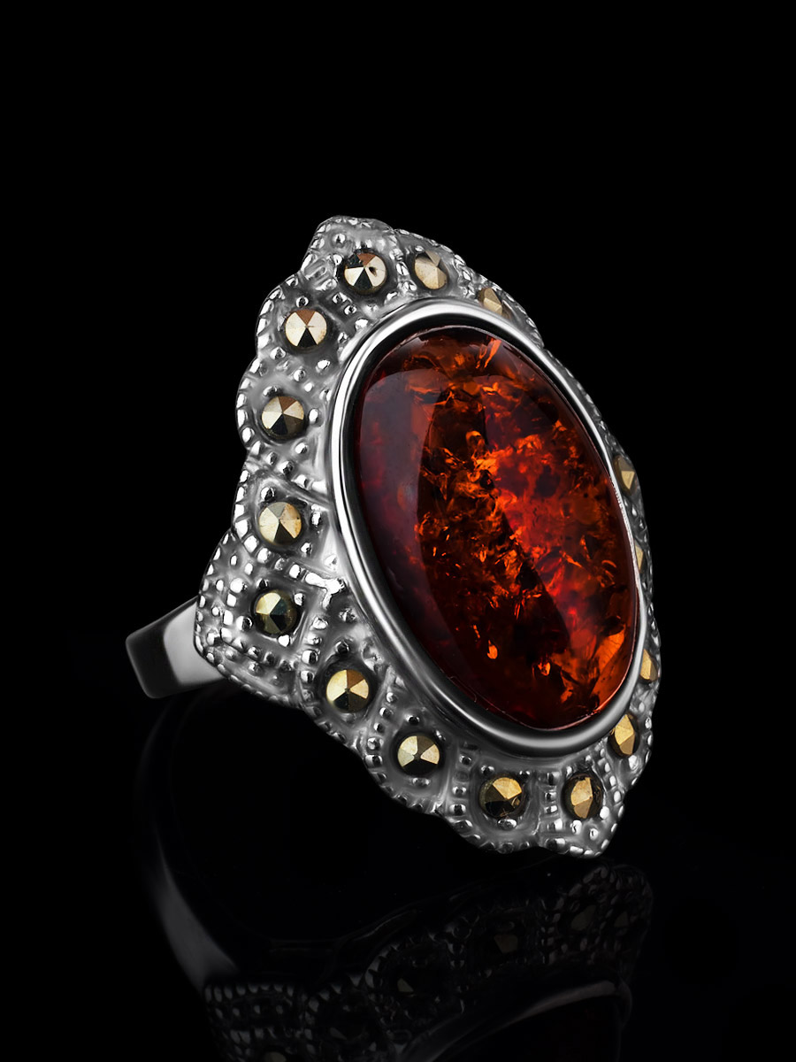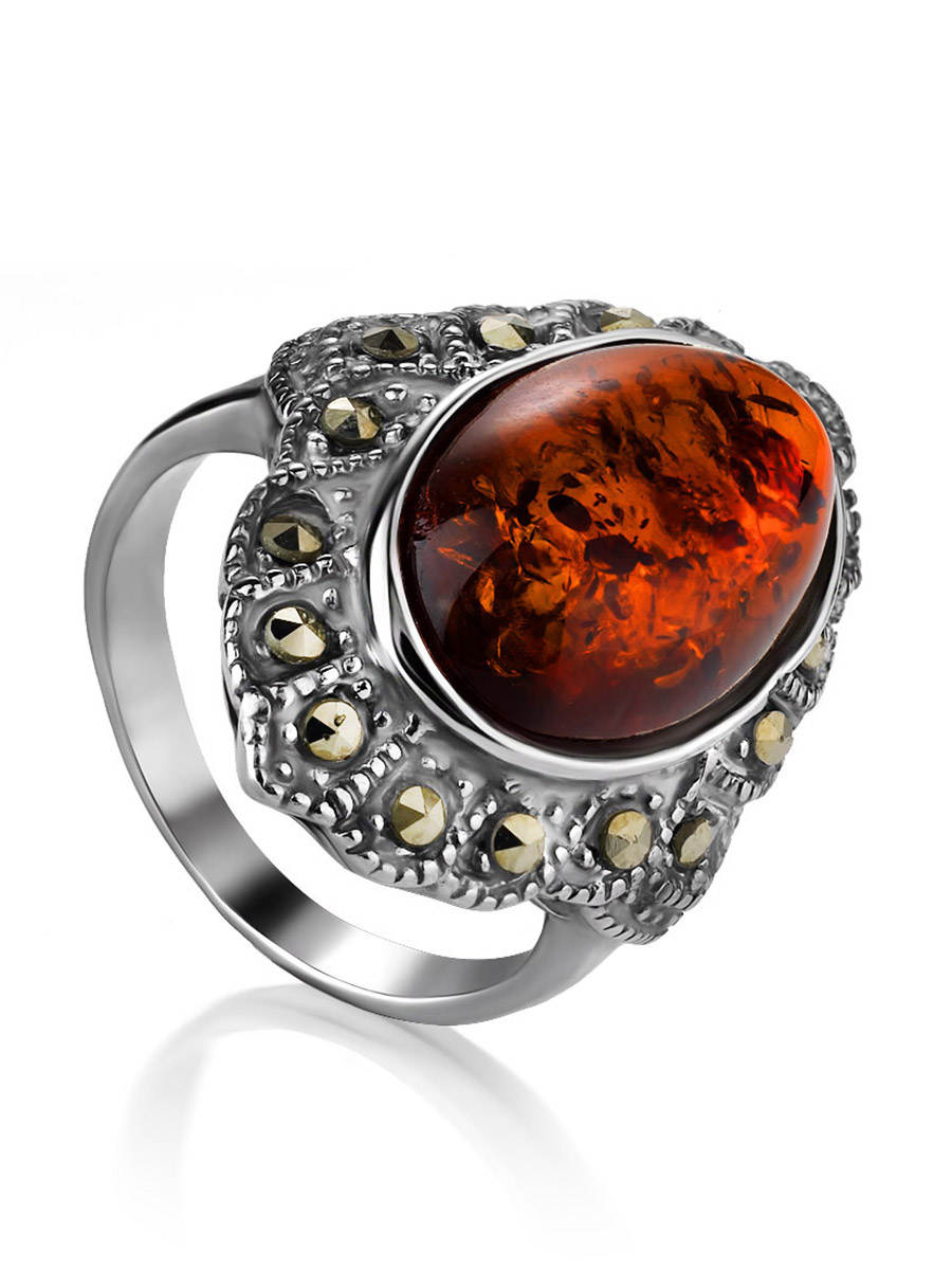 Крупный объёмный перстень «Эйфория» с марказитами и янтарём