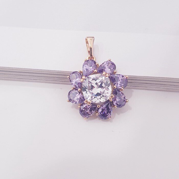 Кулон цветок "Xuping", покрытие позолота, вставка: камень фиолетовый, фианиты, Х000709853,арт.001.428