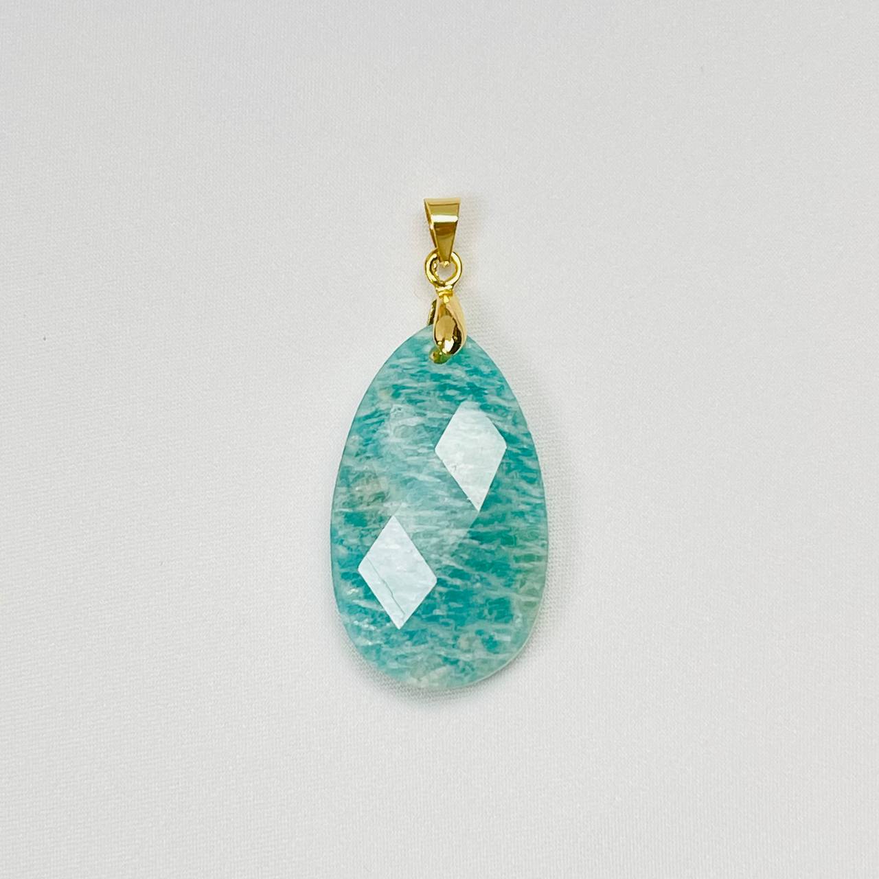 Цвет камня: Бирюзовый Месторожден..показатьие: Перу Камень: Амазонит Покрытие: Золото 14К Поверхность: Гладкий Размер: 18х30 ммие: Перу