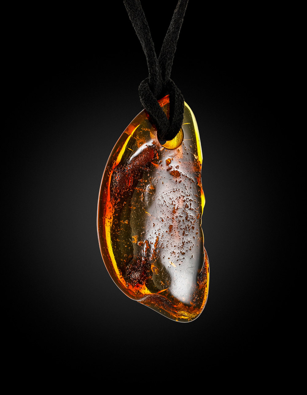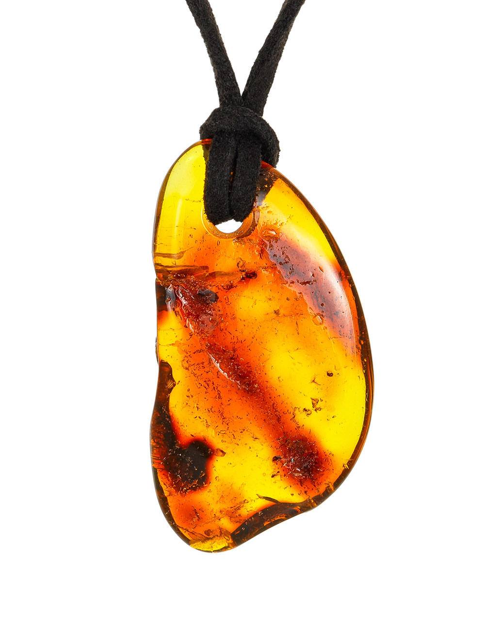 Кулон из цельного коньячного янтаря с природной текстурой на шнурке