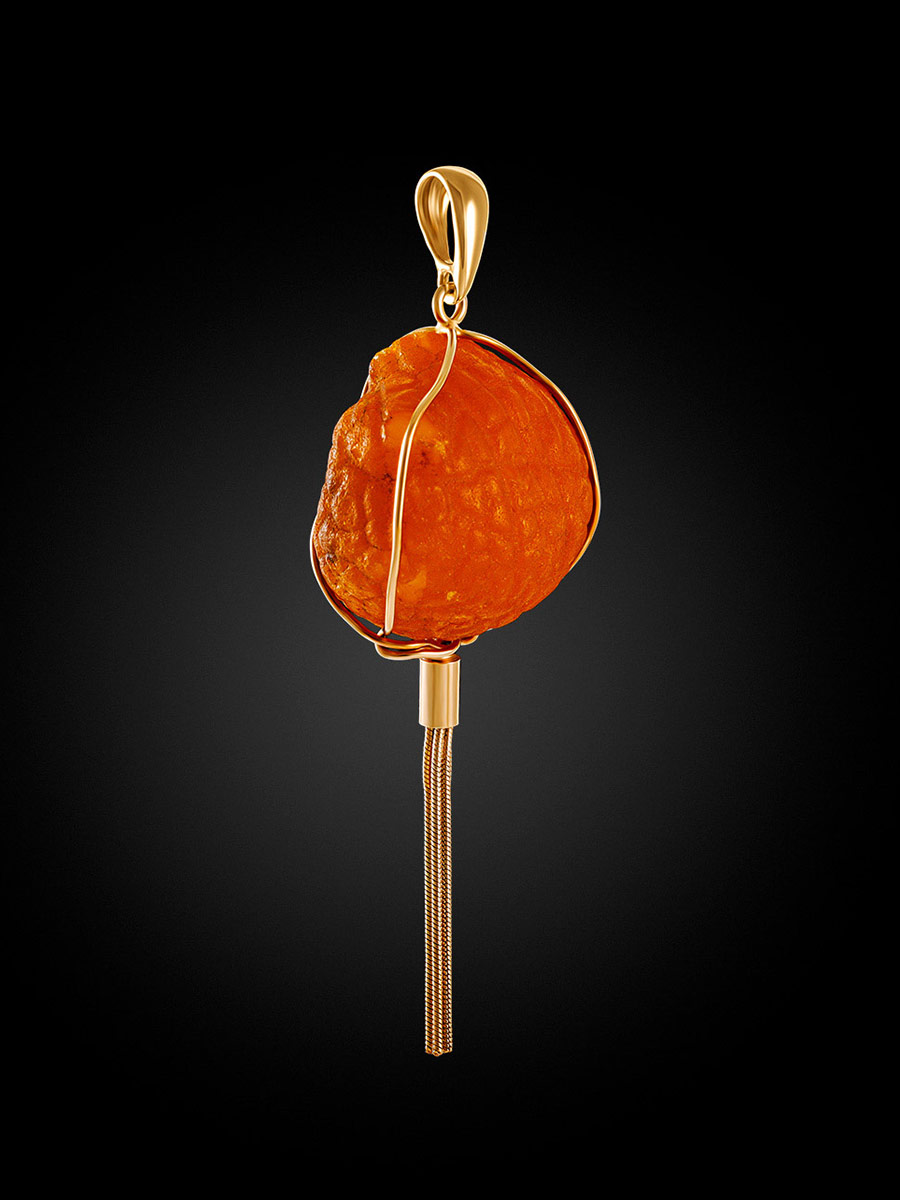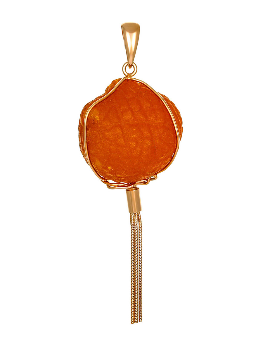 Кулон из цельного янтаря с природной коркой в оправе с кисточкой «Неолит»