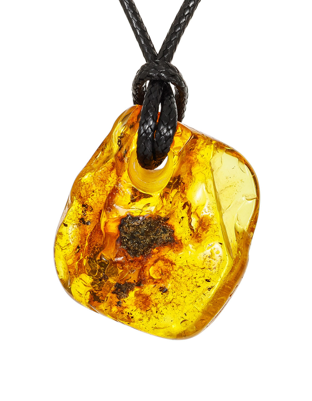 Кулон из лимонного янтаря с красивой природной текстурой на шнурке