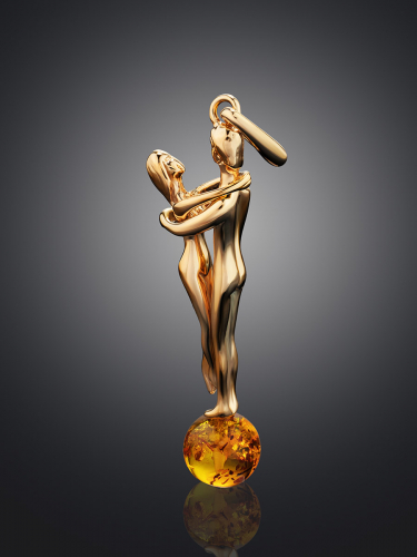 Кулон из натурального цельного янтаря в золочённой оправе «Версаль»
