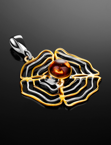 Кулон из натурального янтаря «Гербера» с чернением и золочением
