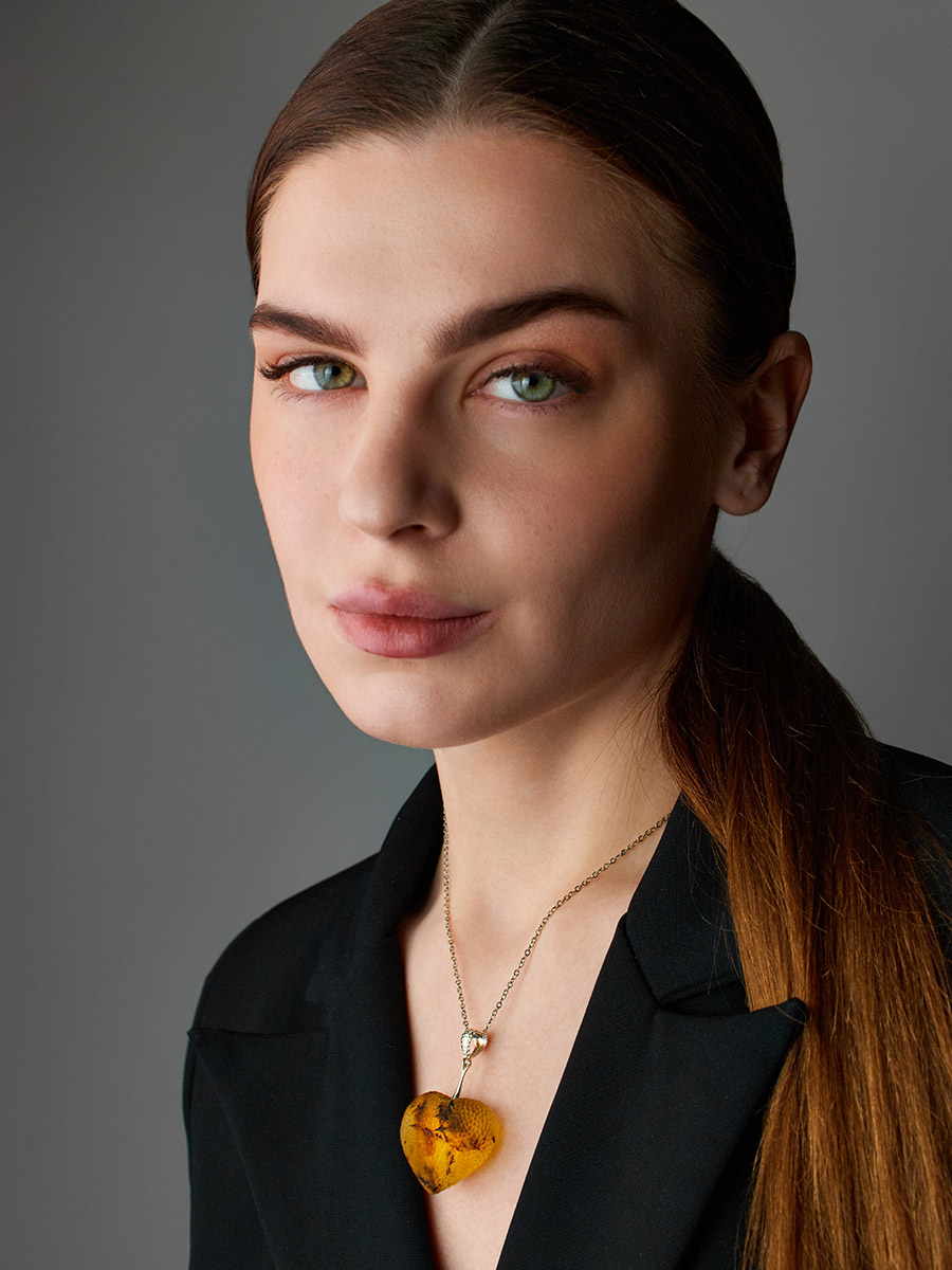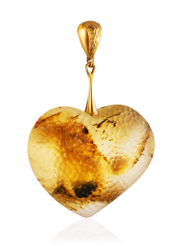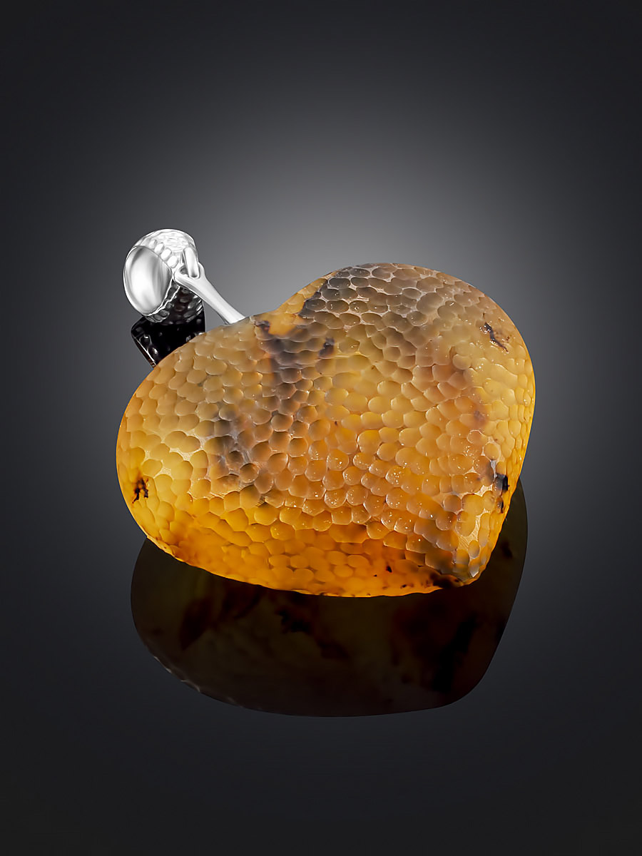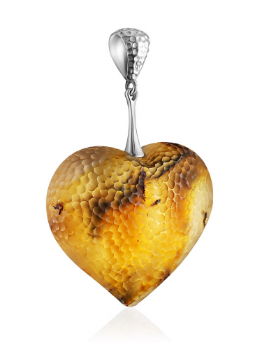 Кулон из натурального янтаря «Сердце» с необычной «кусаной» поверхностью
