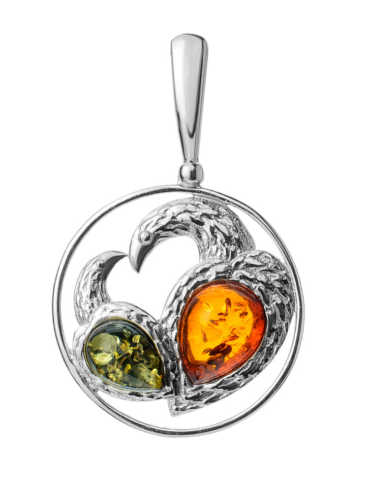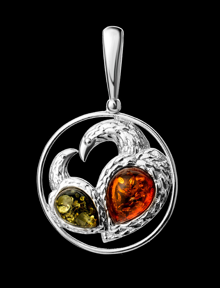 Кулон из янтаря коньячного и зелёного цветов «Лирика»