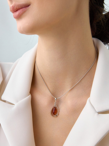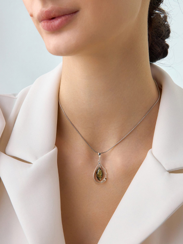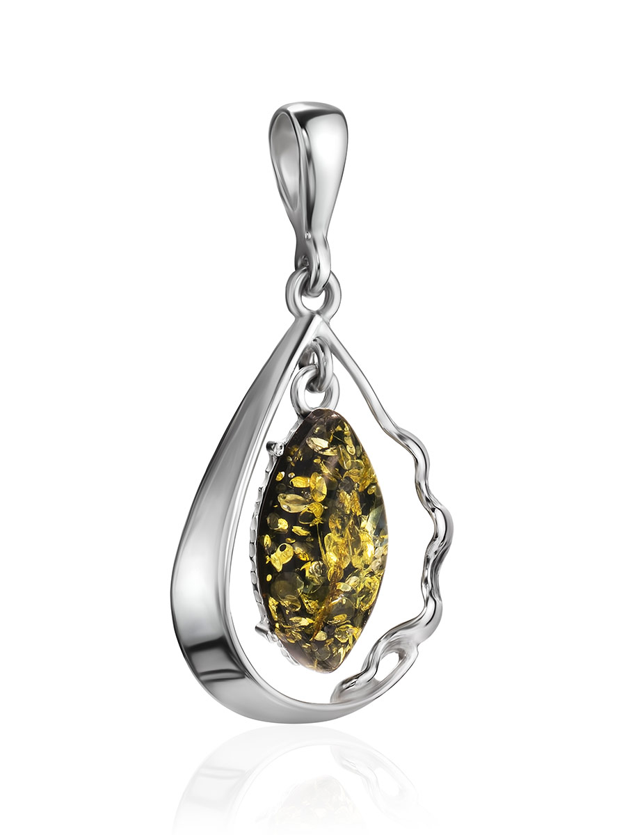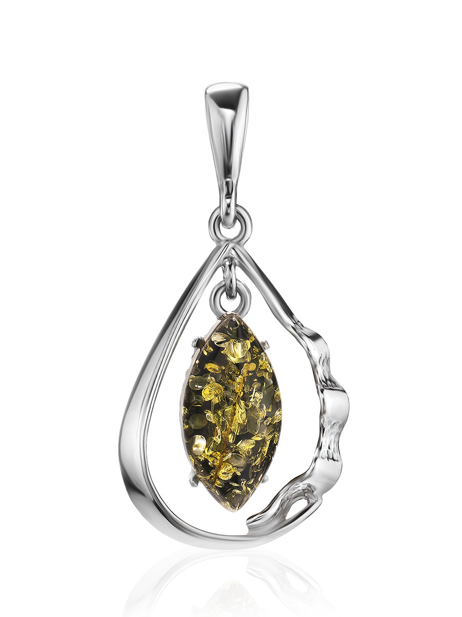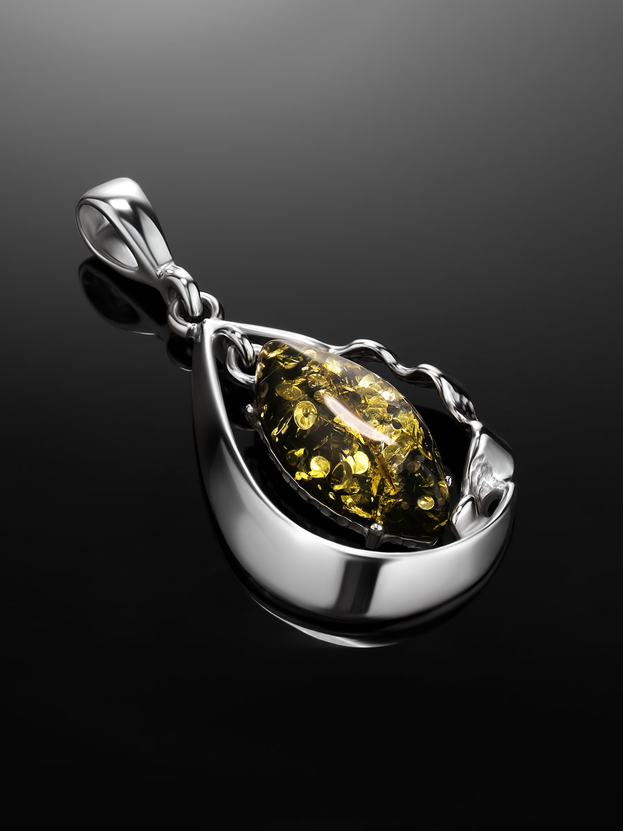 Кулон-капелька с зелёным янтарём «Рапсодия»