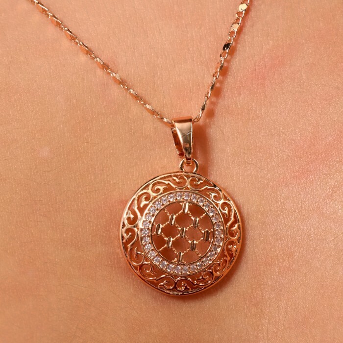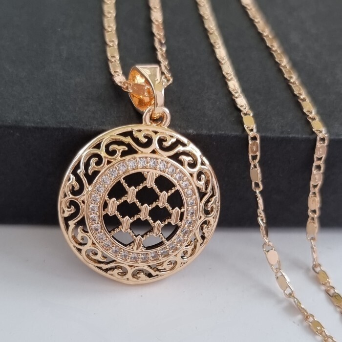 Кулон круглый на цепочке ювелирная бижутерия коллекция "Дубай" покрытие позолота, вставка: фианиты, цвет: прозрачный, арт.314.506