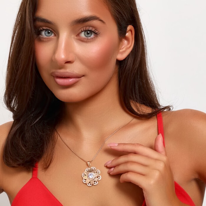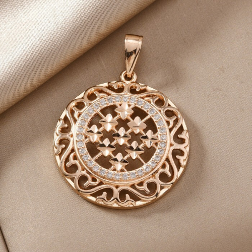 Кулон крупный цветок ювелирная бижутерия коллекция "Дубай" покрытие позолота, вставка: фианиты, цвет: прозрачный, арт.217.343