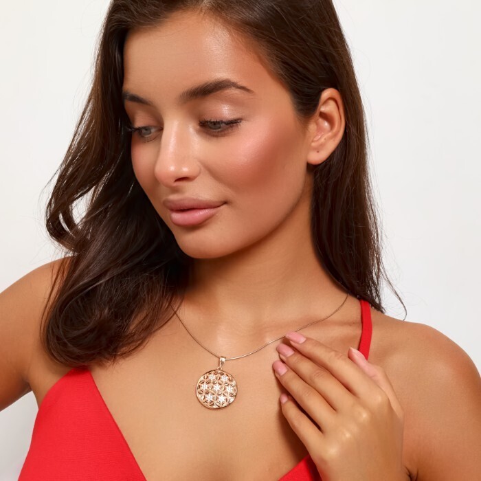 Кулон крупный круглый ювелирная бижутерия коллекция "Дубай" покрытие позолота, вставка: фианиты, цвет: прозрачный, арт.217.346