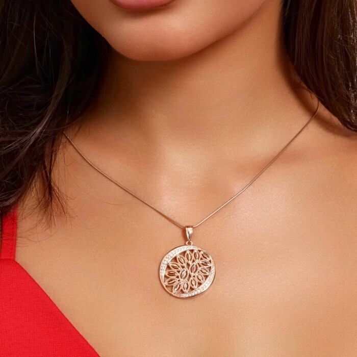 Кулон крупный круглый ювелирная бижутерия коллекция "Дубай" покрытие позолота, вставка: фианиты, цвет: прозрачный, арт.217.341