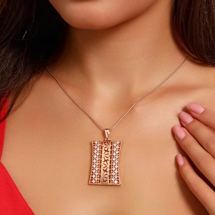 Кулон крупный прямоугольный ювелирная бижутерия коллекция "Дубай" покрытие позолота, вставка: фианиты, цвет: прозрачный, арт.217.347