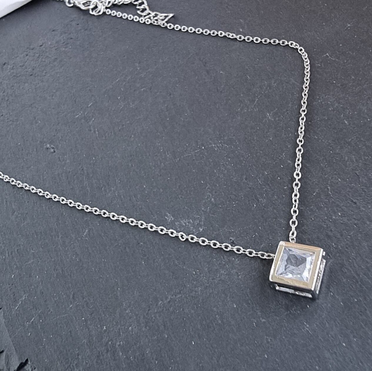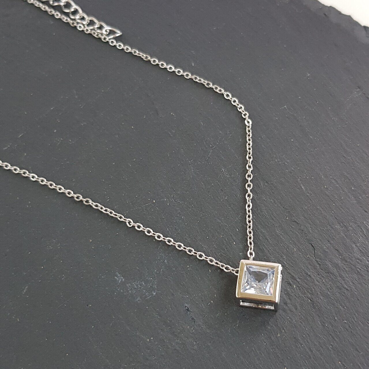 Описание Размер цепочки: 37 (+5)*0,1 см. Размер кулона: 1,2*1,2 см. Материал цепочки: металл. Материал кулона: металл, стекло.