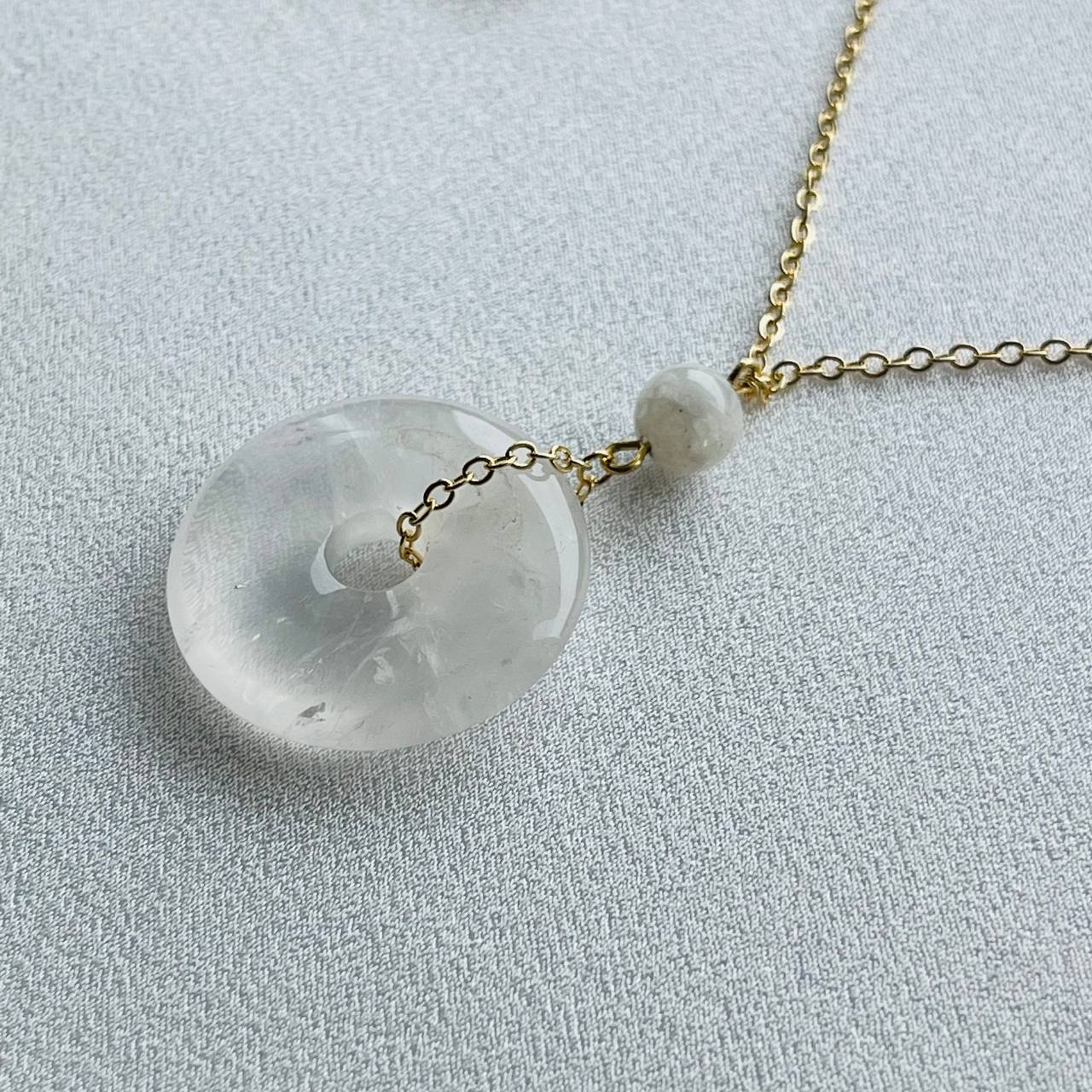 Радуга Самоцветов Кулон на цепочке из Горного Хрусталя и Лунного камня