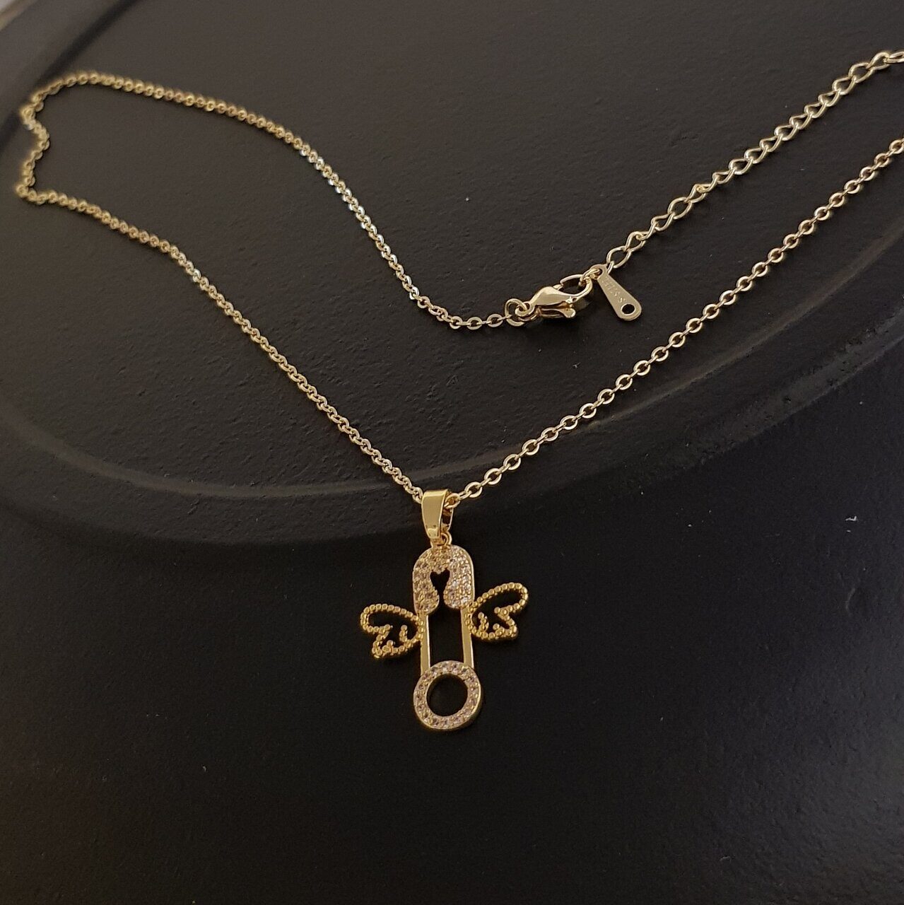 Описание Размер цепочки с кулоном: 46,5 ( +6 )*0,1 см. Размер кулона: 2,5*1,8 см. Вес: 6 гр. Покрытие позолота. Материал: ювелирная сталь, кристаллы, фианиты.