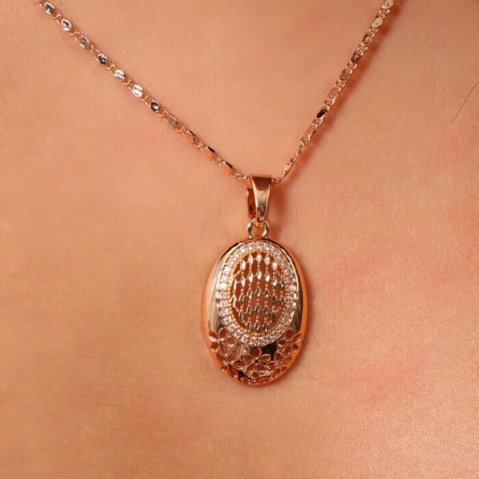 Кулон на цепочке ювелирная бижутерия коллекция "Дубай" покрытие позолота, вставка: фианиты, цвет: прозрачный, арт.314.497