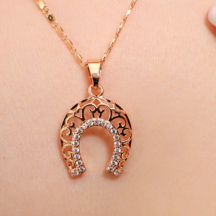 Кулон подкова на цепочке ювелирная бижутерия коллекция "Дубай" покрытие позолота, вставка: фианиты, цвет: прозрачный, арт.314.574