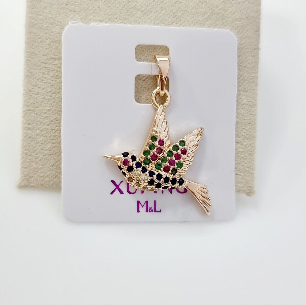 Кулон птица коллекция "Xuping" покрытие позолота, вставка: фианиты разноцветные, 49, арт.01.1689