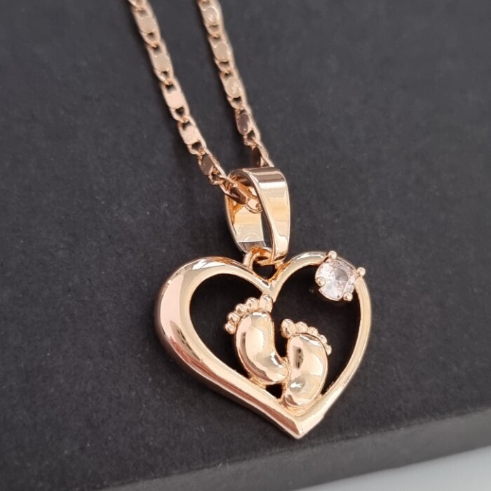 Кулон пяточки младенца на цепочке ювелирная бижутерия коллекция "Дубай" покрытие позолота, вставка: фианиты, цвет: прозрачный, арт.314.575
