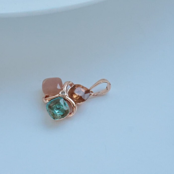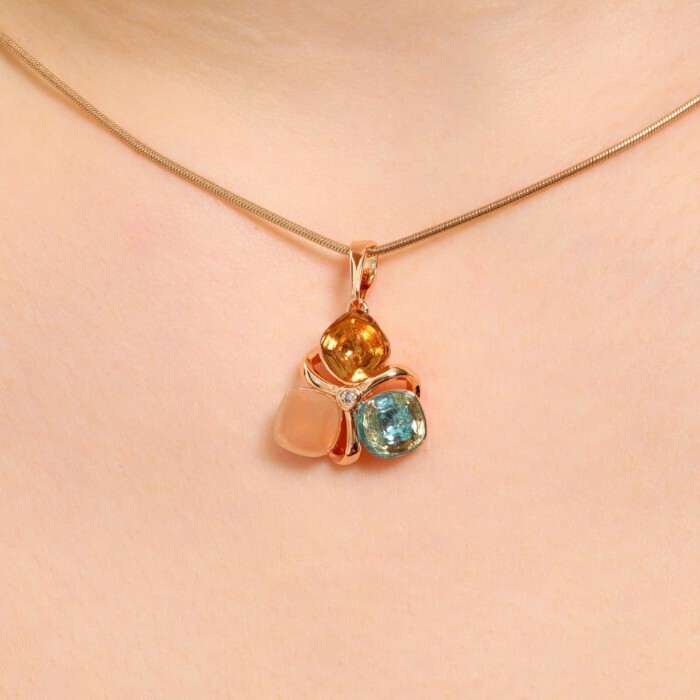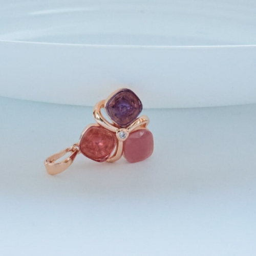 Кулон с цветными камнями ювелирная бижутерия Дубайское золото, с покрытием позолотой, вставка: фианиты, цвет: голубой и бежевый, арт.213.749