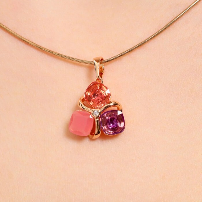Кулон с цветными камнями ювелирная бижутерия Дубайское золото, с покрытием позолотой, вставка: фианиты, цвет: розовый и фиолетовый, арт.213.750