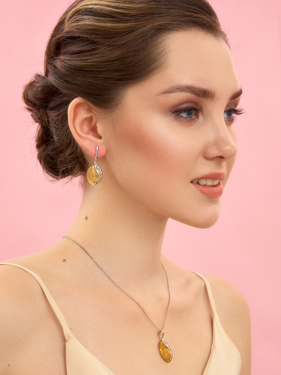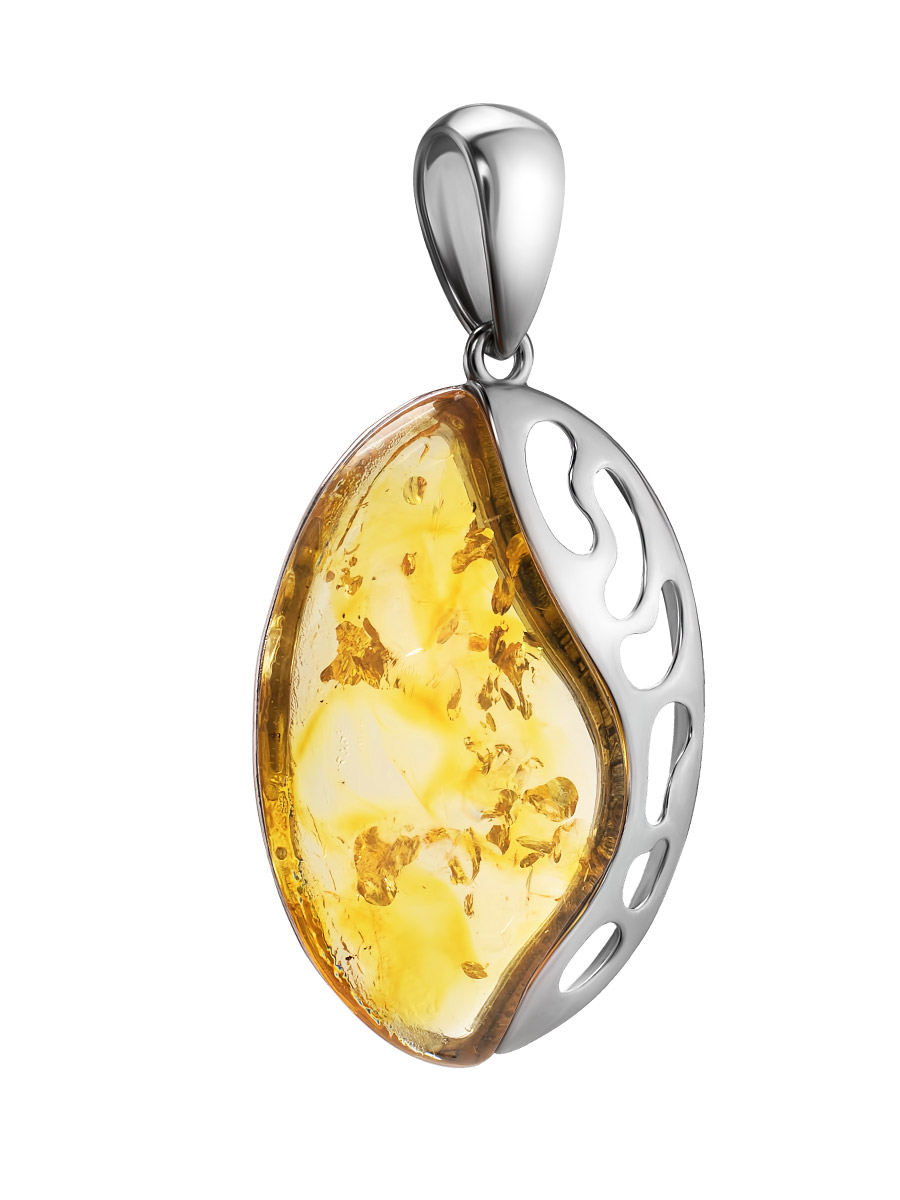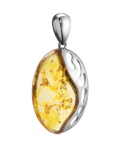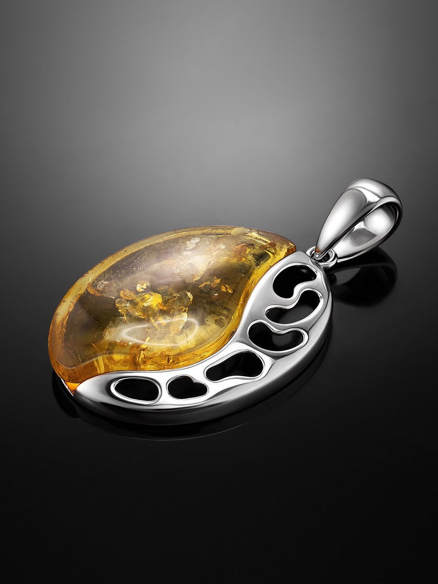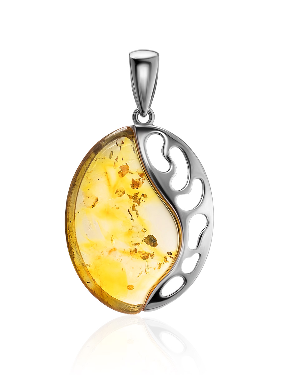 Кулон с эффектной перфорацией, украшенный лимонным янтарём «Санрайз»