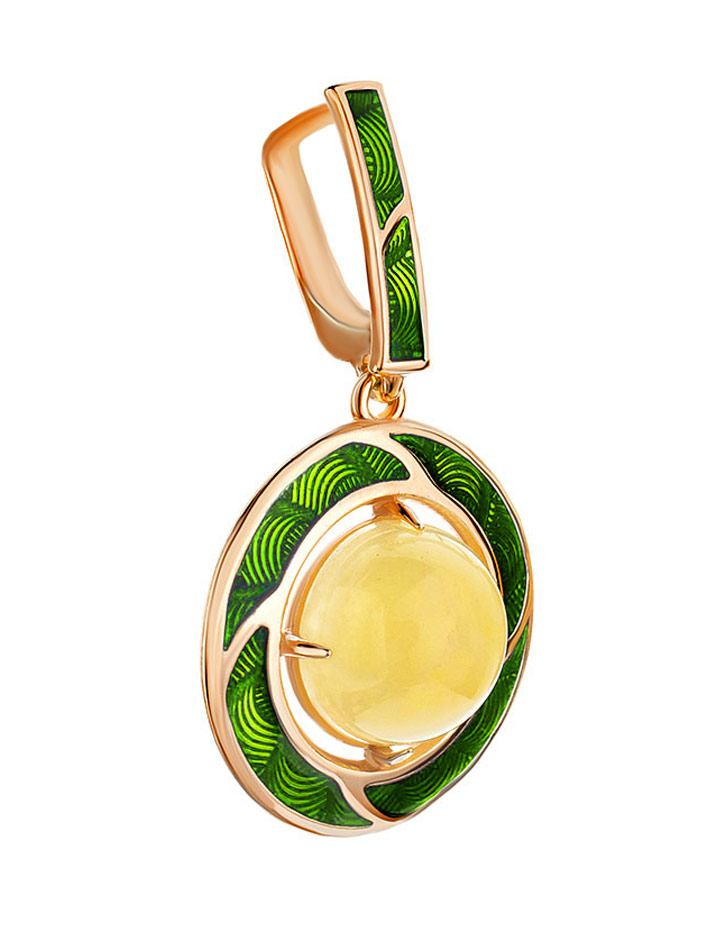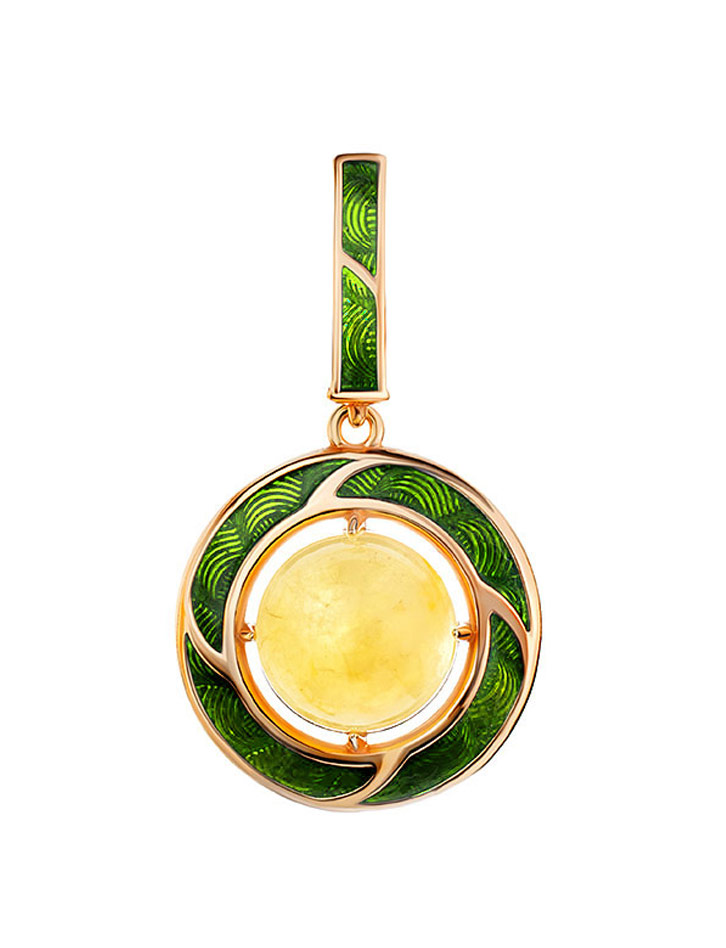 Кулон с зелёной эмалью и медового янтаря «Ампир»