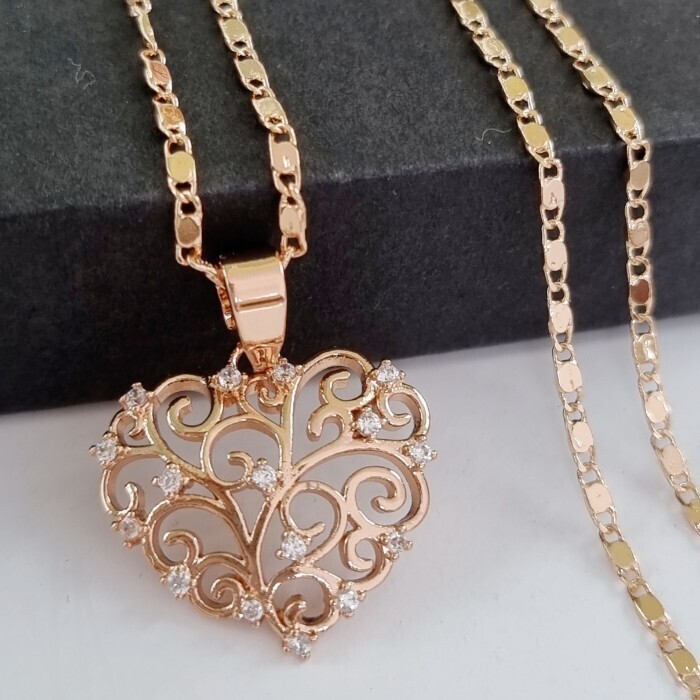 Кулон сердце на цепочке ювелирная бижутерия коллекция "Дубай" покрытие позолота, вставка: фианиты, цвет: прозрачный, арт.314.498