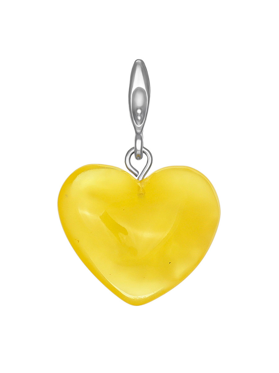 Кулон-сердечко из натурального янтаря светло-медового цвета