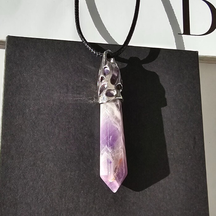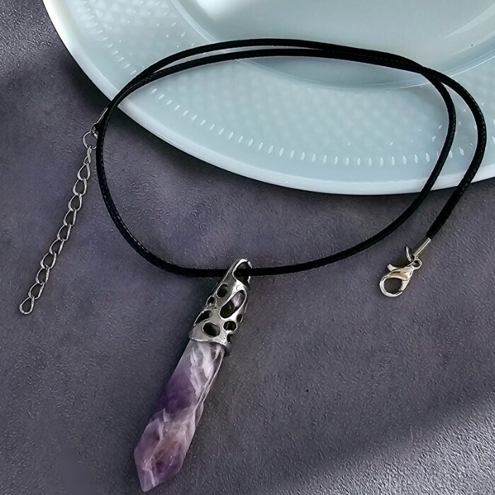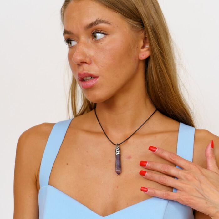 Кулон со шнурком из натурального камня горный Аметист, 1048, Уценка, арт.08.2101