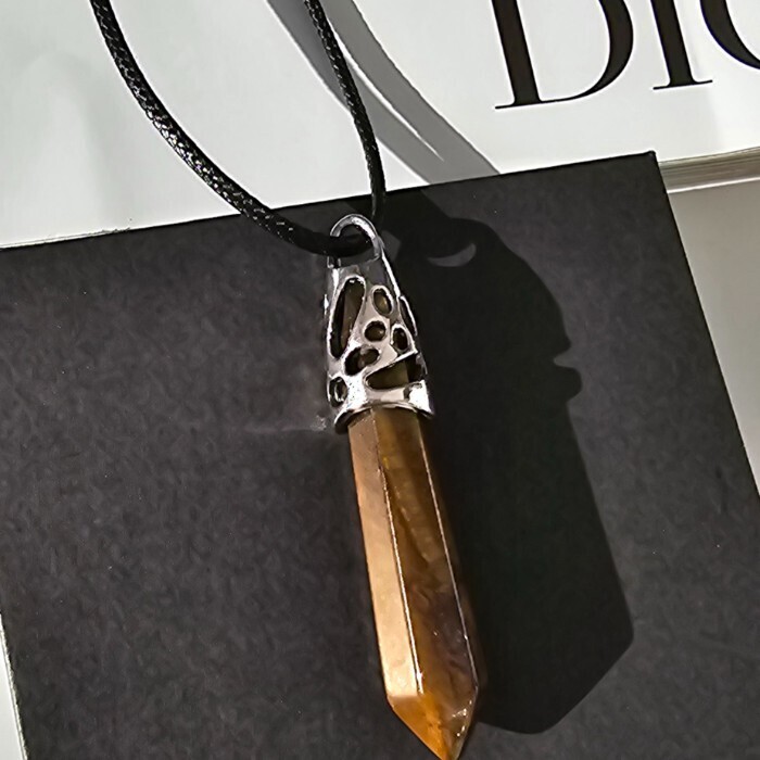 Кулон со шнурком из натурального камня горный Тигровый глаз, 1048, Уценка, арт.08.2104