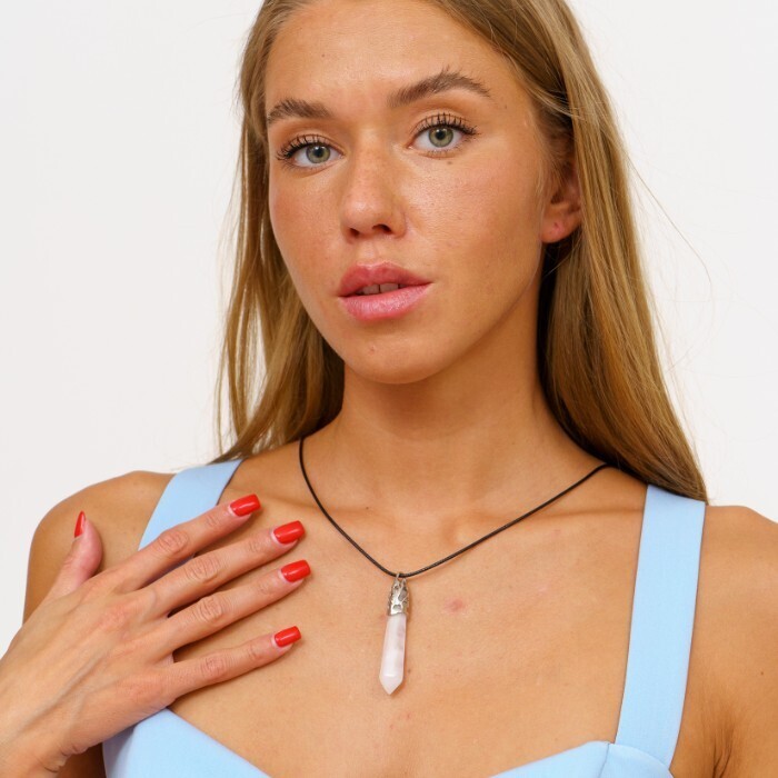 Кулон со шнурком из натурального камня Кварц, 1048, Уценка, арт.08.2103