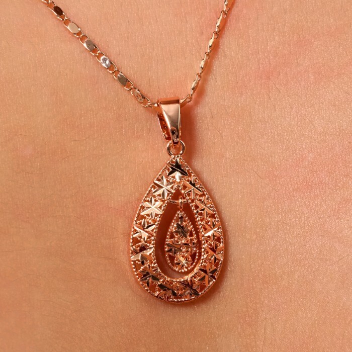 Кулон в форме капли на цепочке ювелирная бижутерия коллекция "Дубай" покрытие позолота, арт.314.489