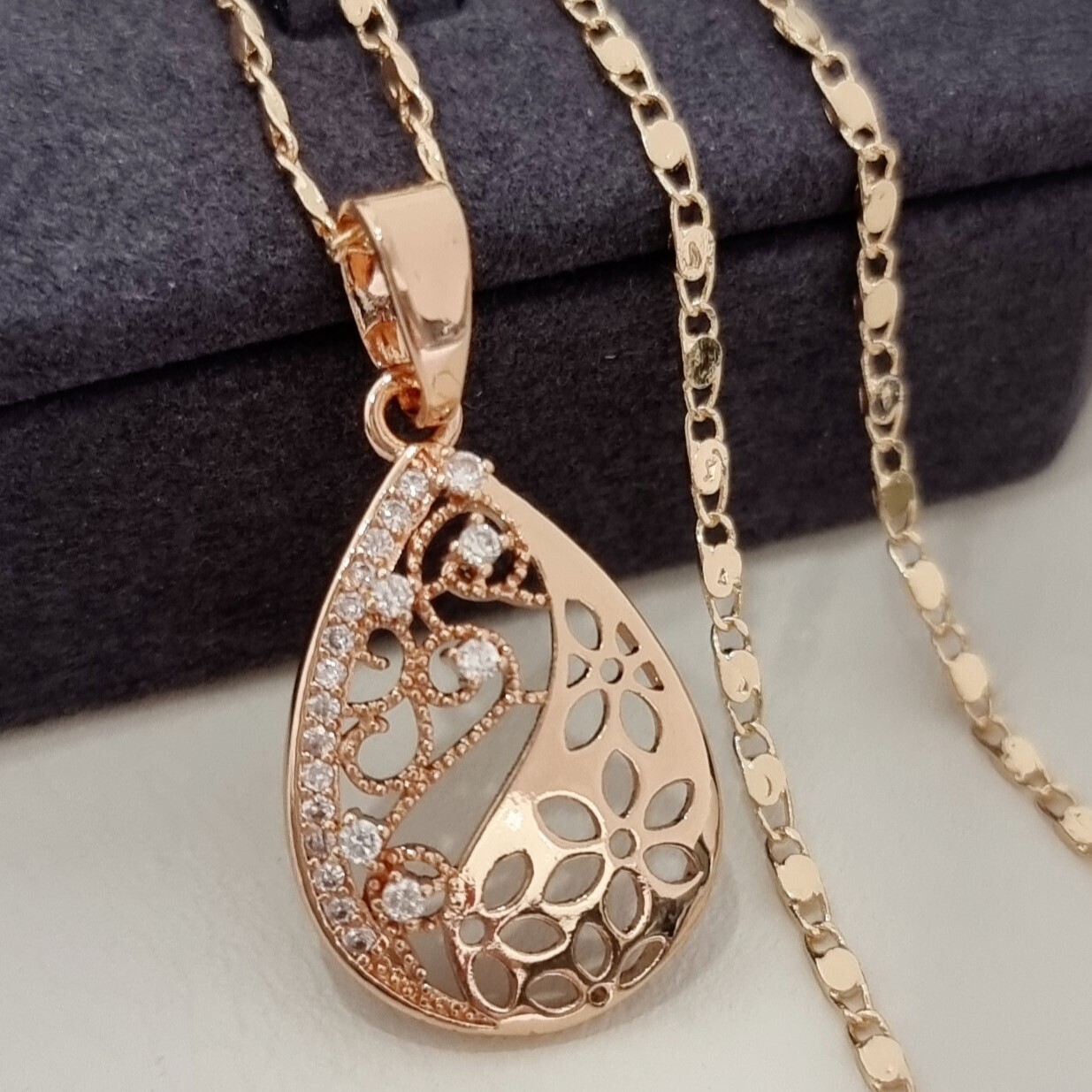 Кулон в форме капли на цепочке ювелирная бижутерия коллекция "Дубай" покрытие позолота, вставка: фианиты, цвет: прозрачный, арт.314.491
