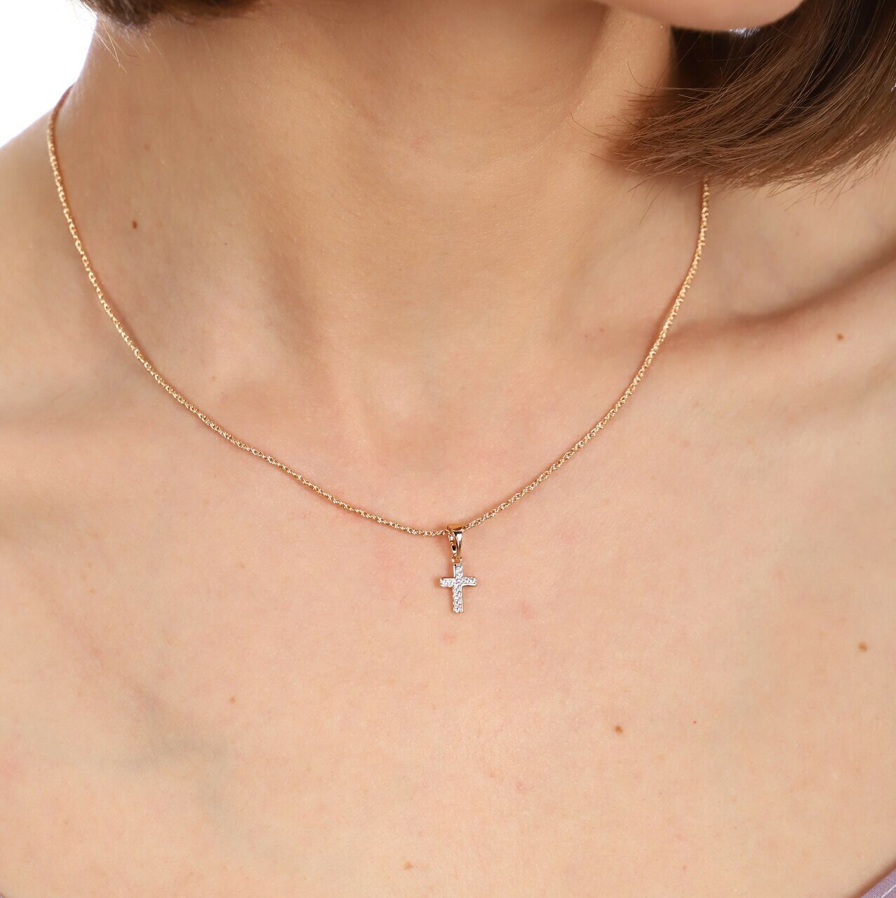 Кулон Xuping, Крестик, покрытие позолота, с фианитами, Е 0103, арт.747.844
