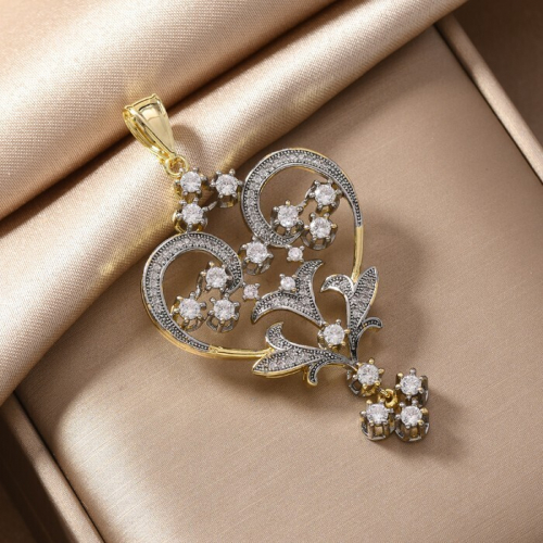 Кулон ювелирной бижутерии Итальянское золото (покрытие желтое 14к), вставка: фианиты, цвет: прозрачный, арт.217.352