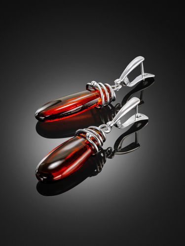 Яркие серьги из серебра и натурального янтаря коньячного цвета отлично дополнят любой ваш образ._x000D_