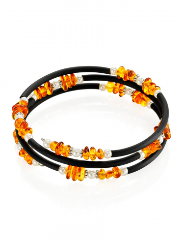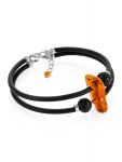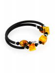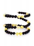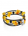 Лечебный браслет с бисером из нешлифованного натурального коньячного янтаря на струне