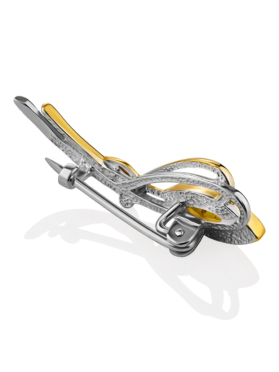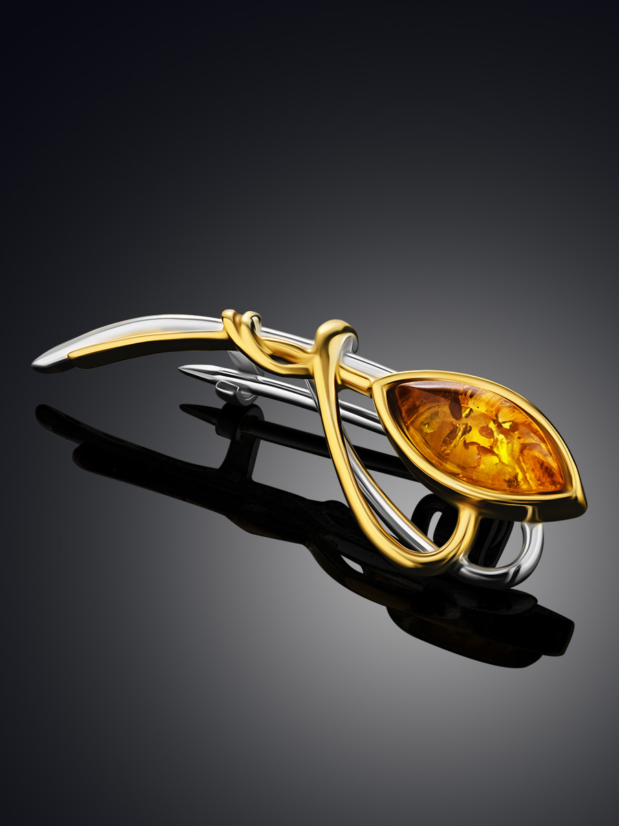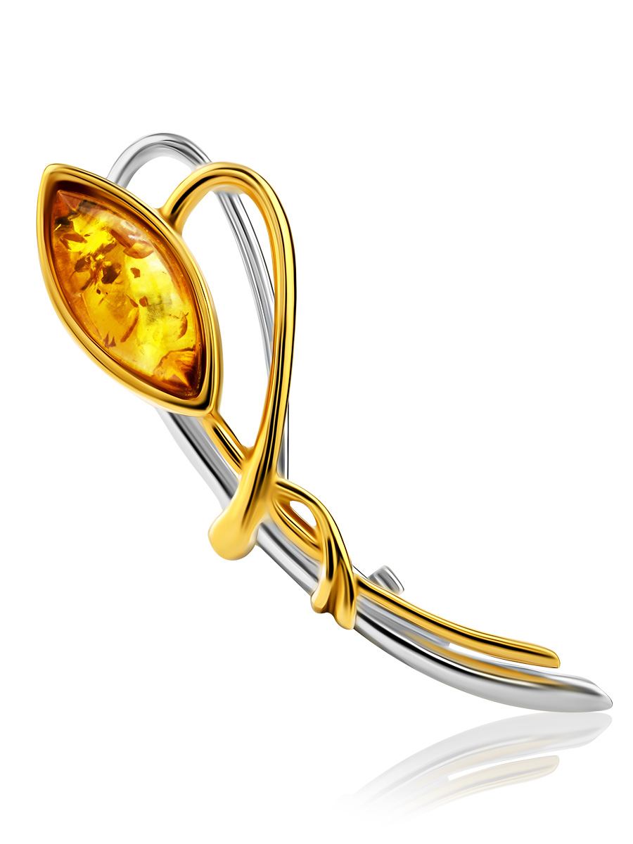 Лёгкая изящная брошь из натурального янтаря «Повилика»