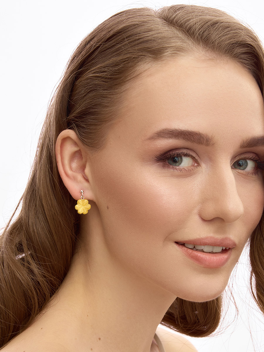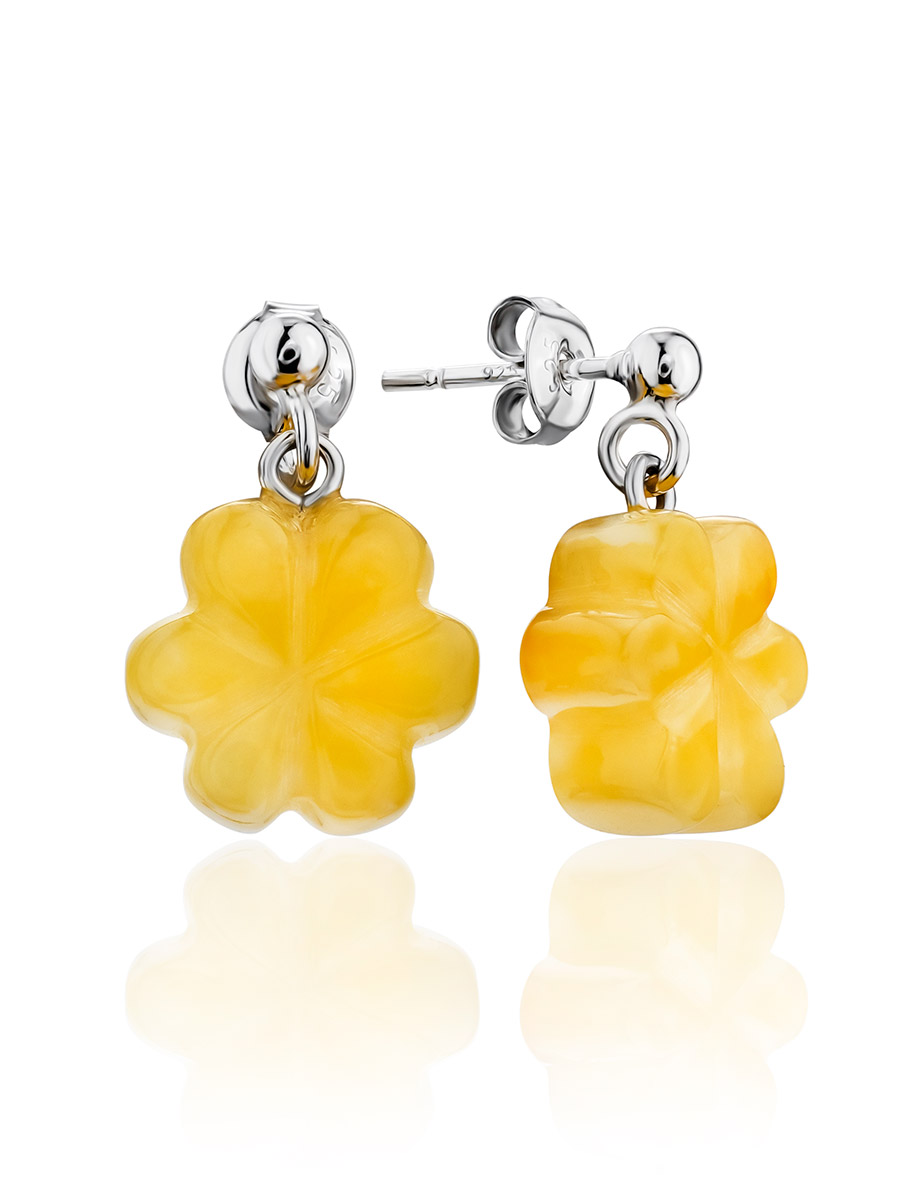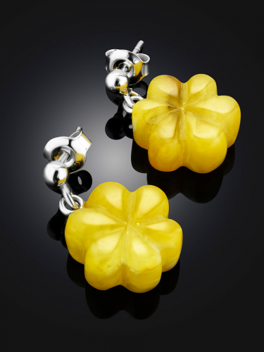 Легкие янтарные серьги на замочках-гвоздиках «Настурция» крупные