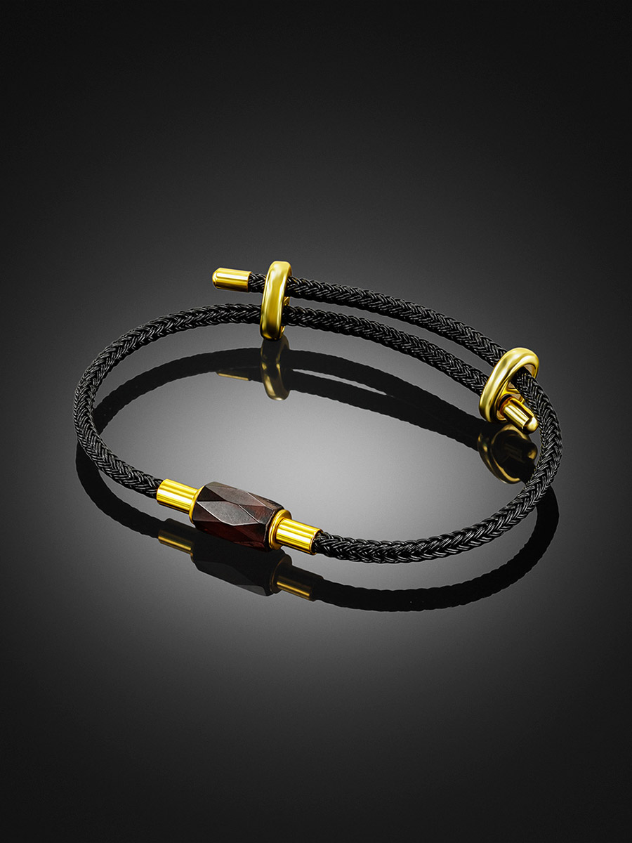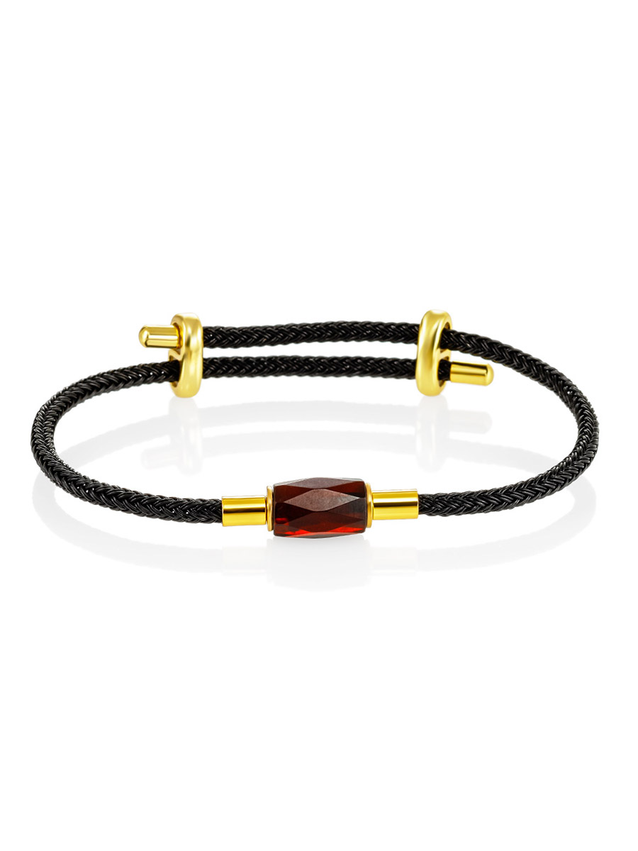 Лёгкий браслет на плетёной основе с гранёной янтарной вставкой