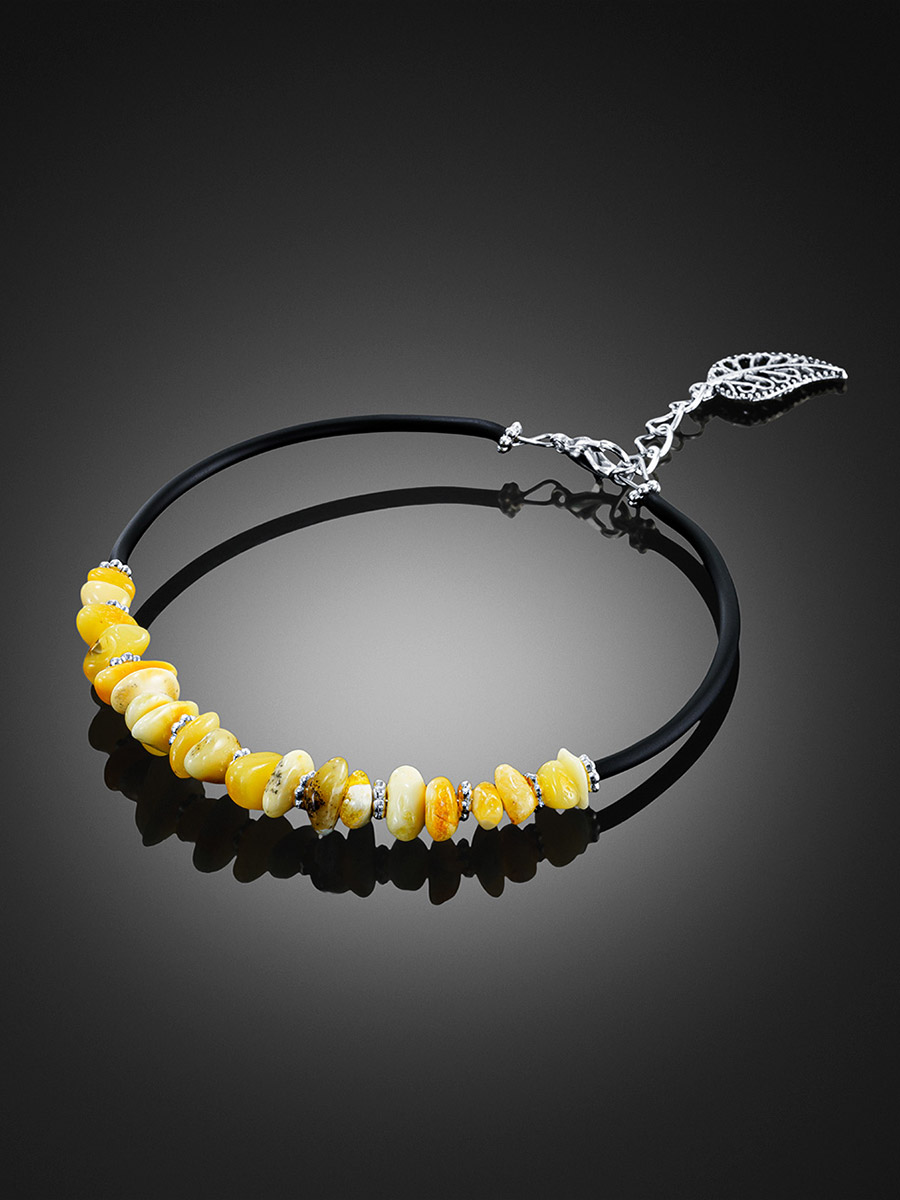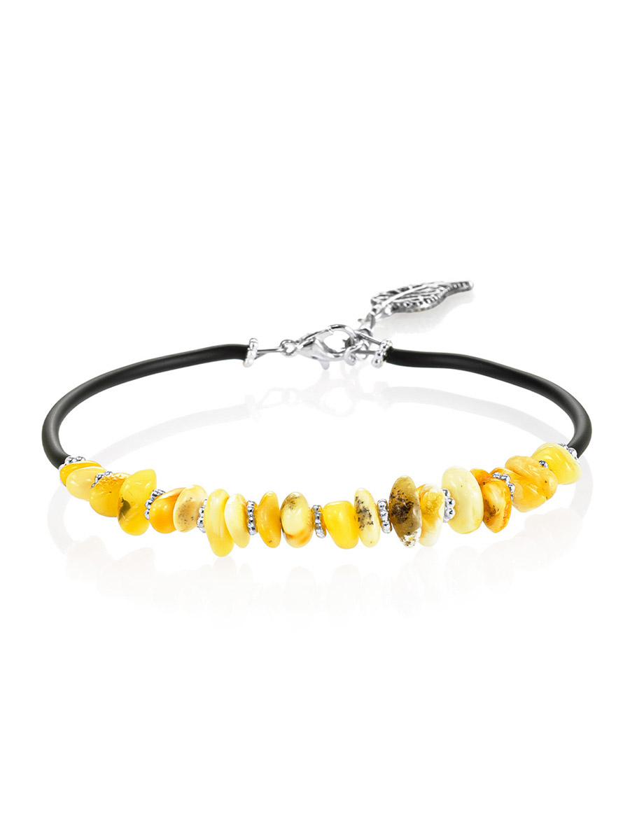 Лёгкий стильный браслет из натурального янтаря и каучука «Оклахома»
