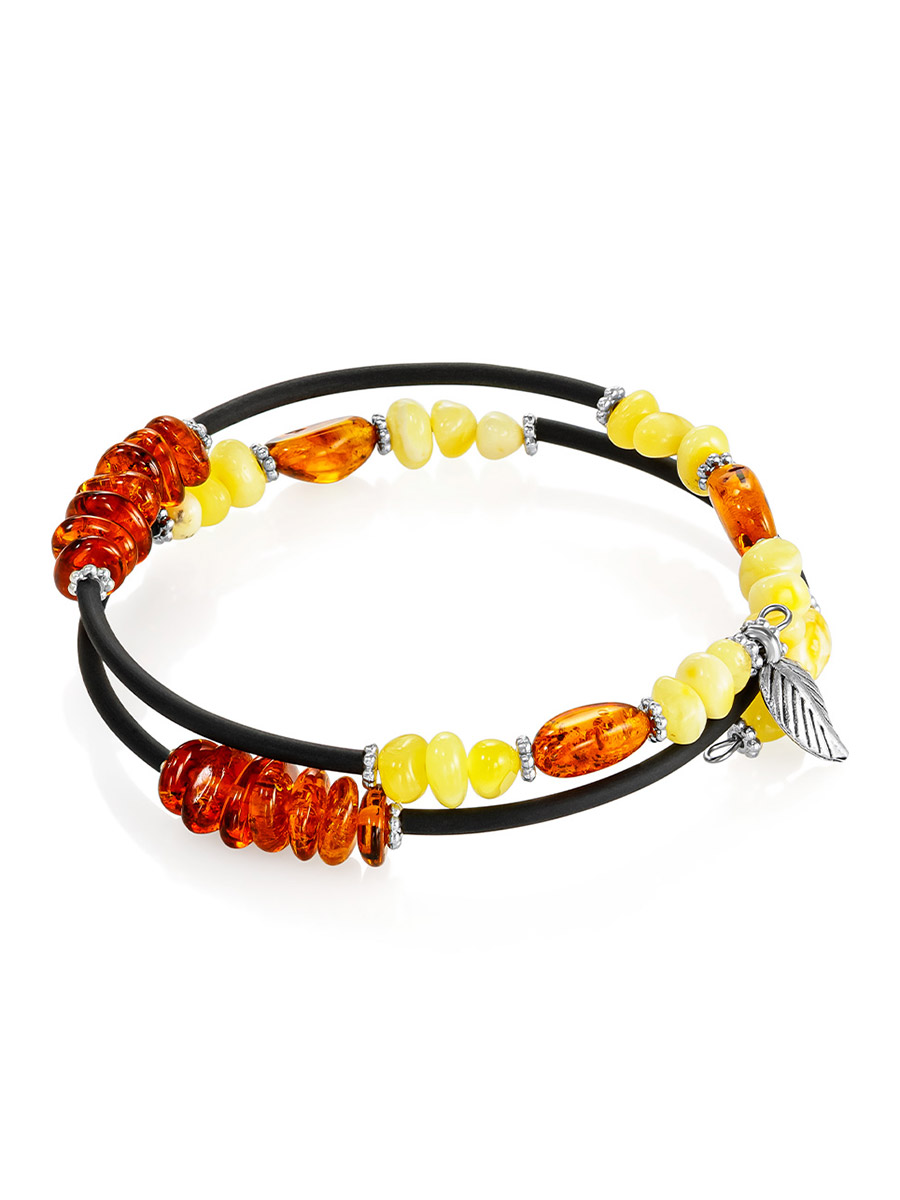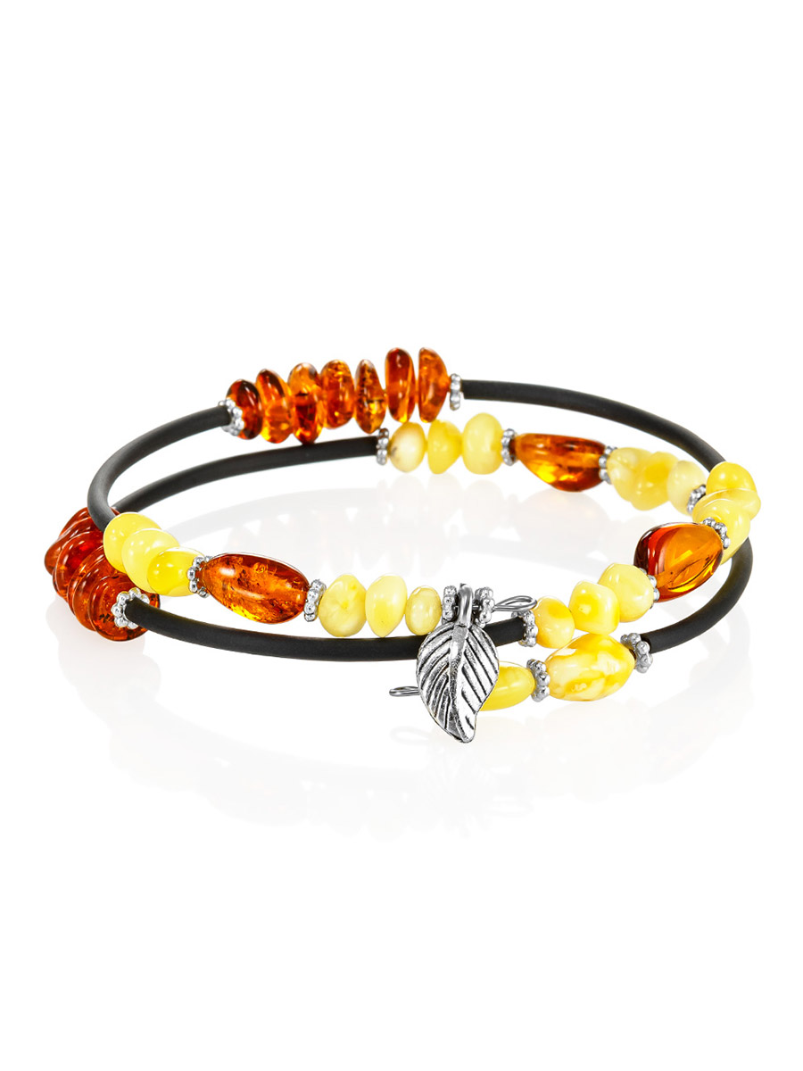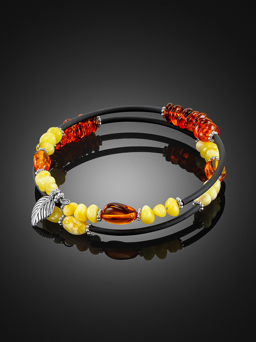 Лёгкий стильный браслет с натуральным янтарём разных оттенков «Оклахома»