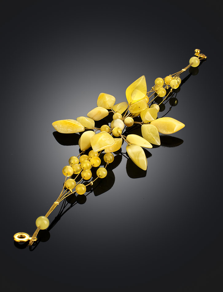 Лёгкий воздушный браслет из натурального цельного янтаря «Первоцвет»