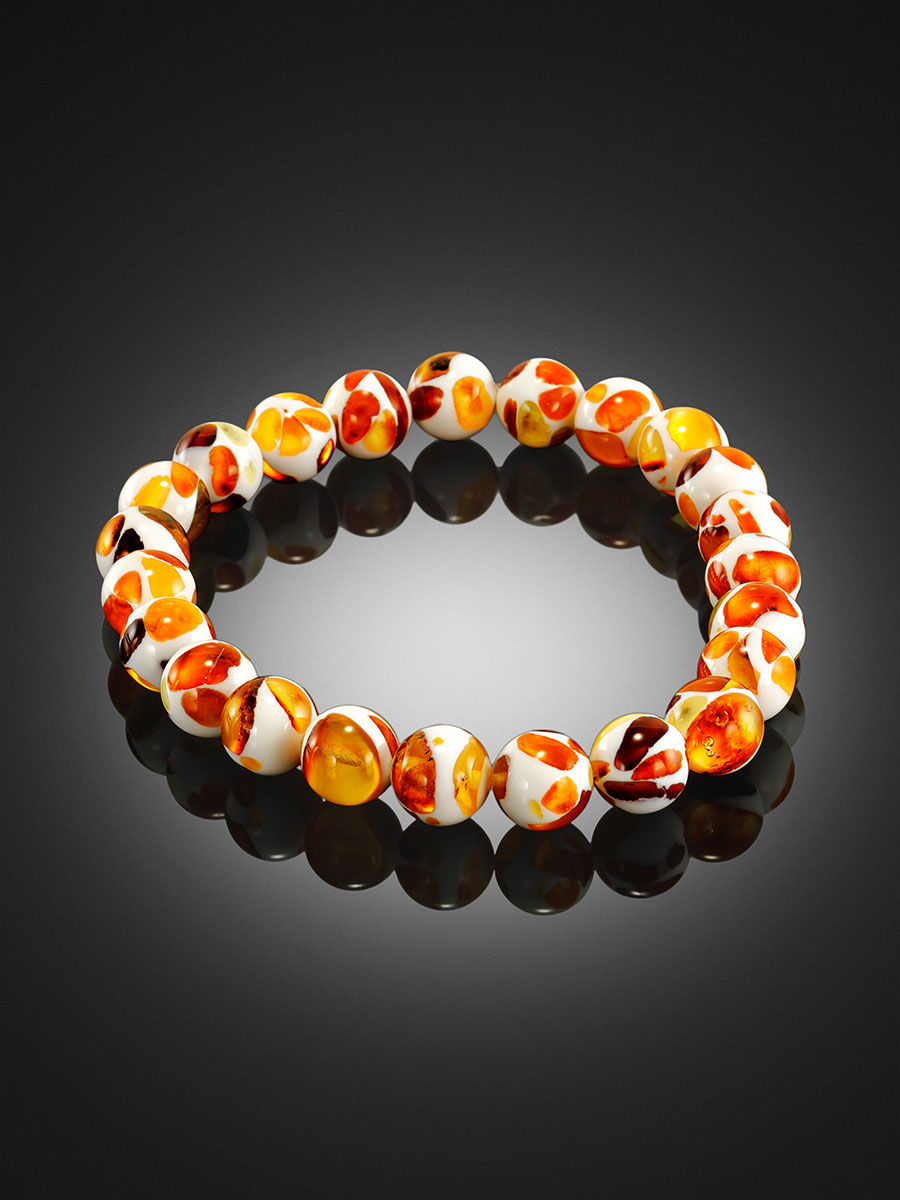 Лёгкий яркий браслет из янтарной мозаики «Далматин»