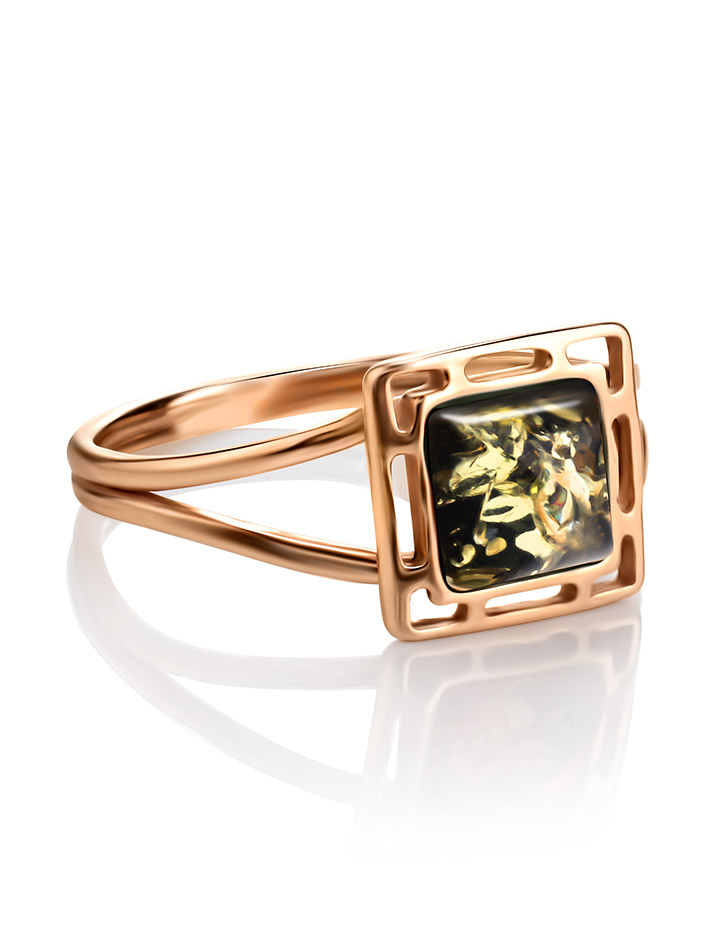Лёгкое изящное кольцо из позолоченного серебра и зелёного янтаря «Итака»